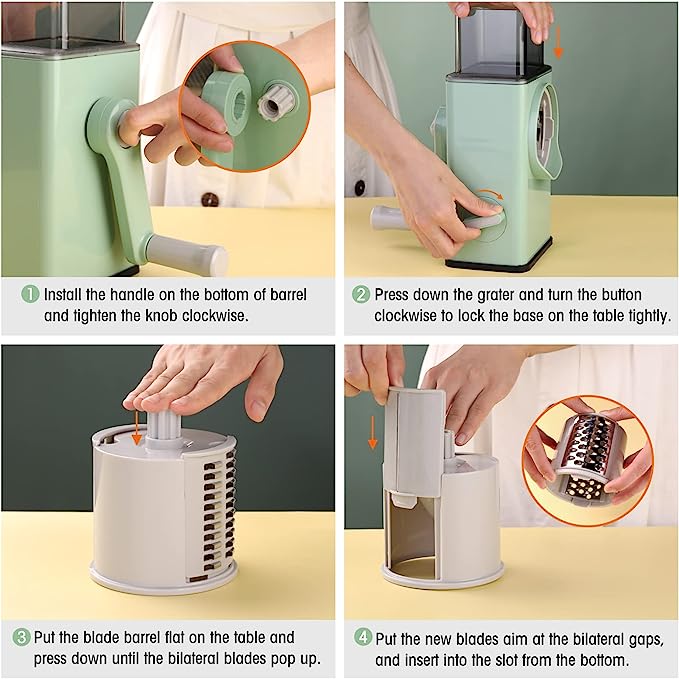 سهلة الاستخدام وآمنة – الشفرات داخل المقصورة الدائرية لذلك فهي آمنة جدًا للاستخدام ويمكن استخدامها لبشر الجبن دون إحداث فوضى. كما أن القاطع سهل التجميع للغاية ولا يتعب يدك حتى عند إعداد الخضروات لمدة أسبوع كامل.